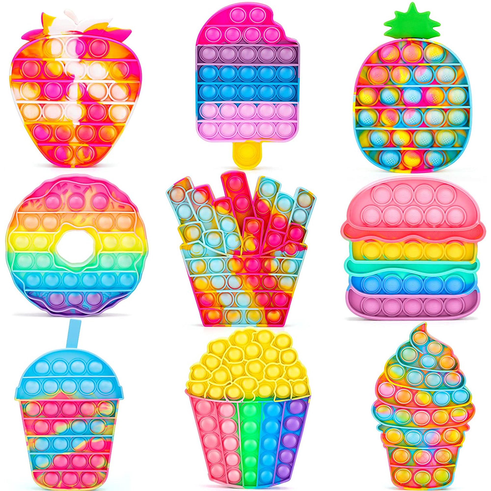 Iguohao Pop Fidget Toys It 3 Pack For Kids And Adults Push Bubble Its Sensory Poppers Fidget Toy For Autism Adhd Add To Relieve Stress Poppet Bulk Of Rainbow Ice Cream Strawberry Pineapple Shapes
