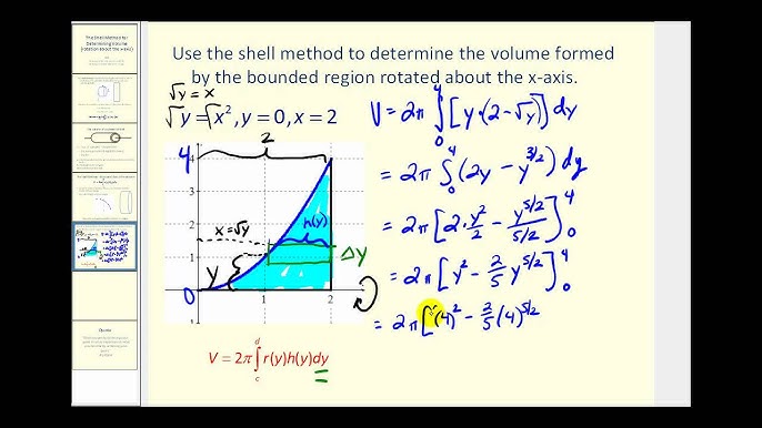 Web The Shell Method Added Jan 28 2014 in Mathematics This widget computes the volume of a rotational solid generated by revolving a particular shape around the y-axis.